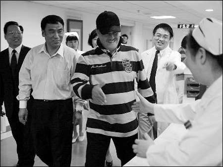 昨天,趙本山在上海華山醫(yī)院出院第一天,本報記者再次踏入醫(yī)院住院部時,這里因為趙本山的離開、媒體的撤離變得一片寧靜。趙本山所住的華山醫(yī)院6號樓12層的華順協(xié)和病房外,醫(yī)院也解除了監(jiān)控,不再有保安把守。記者找到趙本山入住及親人陪護的3間病房,都已經換了新的病人。其中隔壁病房的胡先生告訴記者,趙本山是住的21號到過道窗口的三間病房?!摆w本山住院期間,我們也在這里。可能是因為生病的緣故,他沒有以前氣色好,我們在過道碰見他,他也非常友好?!焙壬f,趙本山吃飯都在病房里,只是偶爾能在過道上、醫(yī)院花園里能碰見他?!摆w本山住院期間,醫(yī)院安保工作非常嚴密。他是大笑星,受到這樣的待遇是應該的。他能出院,我們也很高興,祝愿他早日痊愈,再上春晚舞臺給我們表演小品?!?/p>