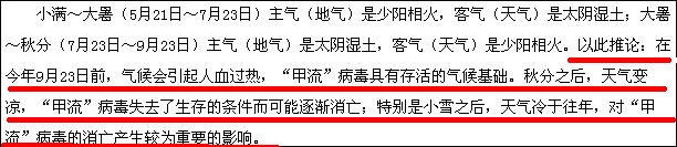 【byb.cn】?編者按:這兩天學(xué)習(xí)五運(yùn)六氣,偶然轉(zhuǎn)到了劉逢軍的大道堂網(wǎng)站上,看到他在7月份寫的一篇文章:“用《黃帝內(nèi)經(jīng)》的觀點(diǎn)探索甲型H1N1流感”其中有一段是他運(yùn)用“五運(yùn)六氣”之法,對甲流發(fā)病的預(yù)測,讀來很有意思。劉逢軍認(rèn)為,甲流進(jìn)入冬季后,病毒失去了存活的基礎(chǔ),即將消亡。