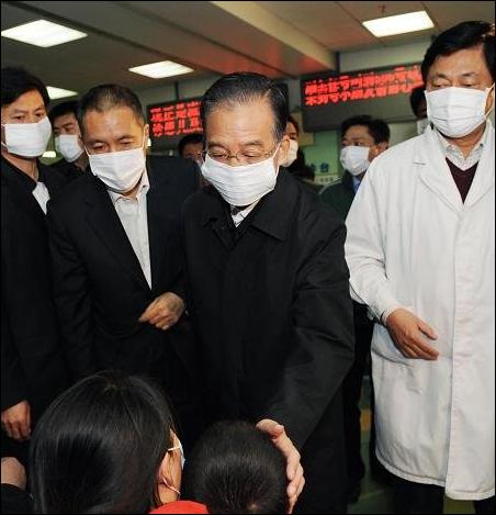 10月31日溫家寶總理去北京兒童醫(yī)院看望醫(yī)護人員和患者也不得不戴上口罩