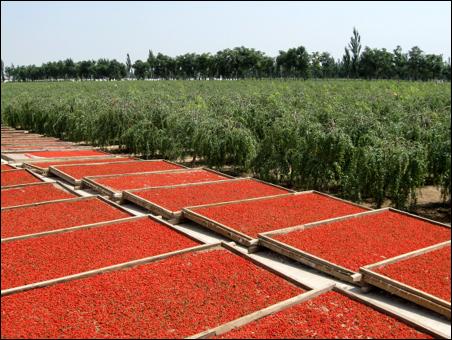 關(guān)于枸杞的品質(zhì):很多的藥材都是野生的好于人工栽培的,但枸杞是例外,人工栽培的要好于野生的。枸杞以果大、飽滿、口感酸甜為佳。中國(guó)的枸杞,以寧夏出的最好。