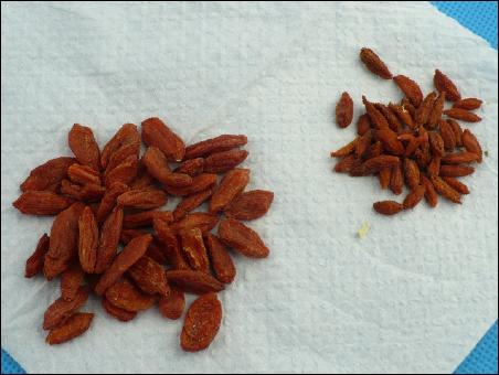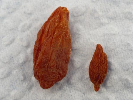 左為本次購買的枸杞,右為在超市買的