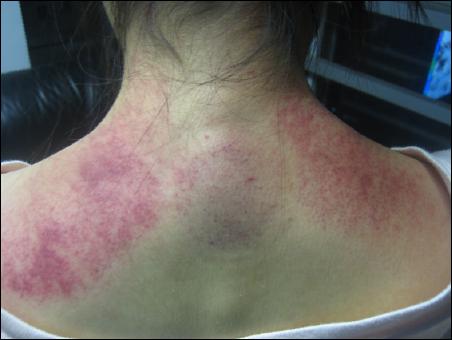 既然是因?yàn)槿樗岫逊e而造成的經(jīng)絡(luò)堵塞,那么,我們刮開不就行了嗎?其實(shí)道理就這么簡單。下面給大家看一組刮脖子出痧的圖片。