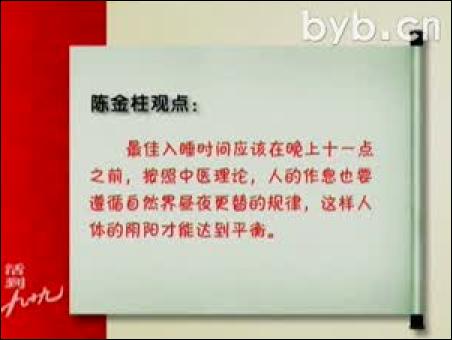 下面這段視頻,是2009年3月,陳金柱在山東農(nóng)科頻道《活到99》系列養(yǎng)生節(jié)目中,主講的“誰動(dòng)了我的睡眠”片斷。在談到睡眠時(shí),陳金柱特地強(qiáng)調(diào)了,人要順應(yīng)天時(shí),一定要在晚上11點(diǎn)之前躺在床上,而不是睡夠了8個(gè)小時(shí)就可以的。下面來看陳金柱的視頻。