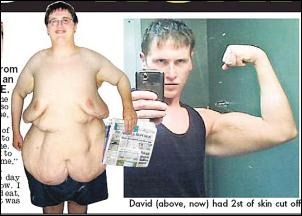 由于大衛(wèi)在短時間內(nèi)減去了如此多體重,令他身上多出了大量松弛的皮膚。不久前大衛(wèi)又接受拉皮手術(shù),切掉了身上大約12.7公斤多余的皮膚。此外,他還接受了牙科手術(shù),換上了整齊潔白的烤瓷牙?,F(xiàn)在,大衛(wèi)的體重只剩下了95公斤,渾身都是結(jié)實(shí)勻稱的肌肉,不久前還當(dāng)上了健身教練。