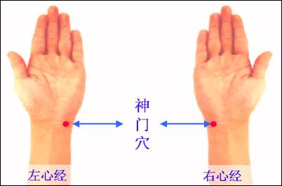 神門穴位置:神門穴在腕橫紋上,手小指一側(cè)腕下方肌腱的里側(cè)。