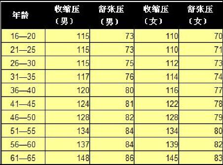 另外血壓跟歲數(shù)還年齡也有關(guān)系,大家可以根據(jù)下表參看自己的血壓。