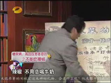 在3月18日的節(jié)目中,張悟本繼續(xù)講了五畜為益中關(guān)于吃肉方法。