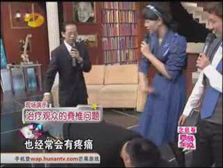謝教授現(xiàn)場為主持人維嘉治療腰椎問題