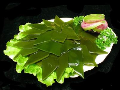 海帶中含有一種叫做硫酸多糖的物質(zhì),能夠吸收血管中的膽固醇,并把它排出體外,使血液中的膽固醇保持正常含量。另外,海帶表面有一層略帶甜味的白色粉末,是極具醫(yī)療價(jià)值的甘露醇,它具有良好的利尿作用,可以治療腎功能衰竭、藥物中毒、浮腫等。
