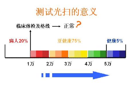 這臺生物光子掃描儀,給我們用不同的顏色,標(biāo)記了我們?nèi)梭w內(nèi)的抗氧化指數(shù).