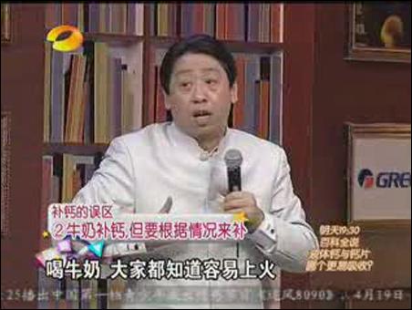 【byb.cn】?2010年4月14、15日,張悟本三上湖南衛(wèi)視百科全說,就補(bǔ)鈣問題,向廣大電視觀眾闡述了自己的觀點(diǎn)。
