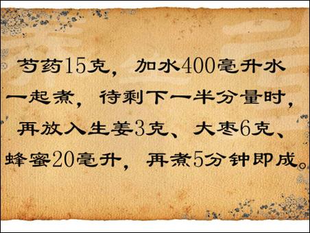 白芍——炙甘草,緩急止痛,用于各種疼痛,特別是急性腹痛、頭痛,小腿抽筋、婦女痛經(jīng)等。