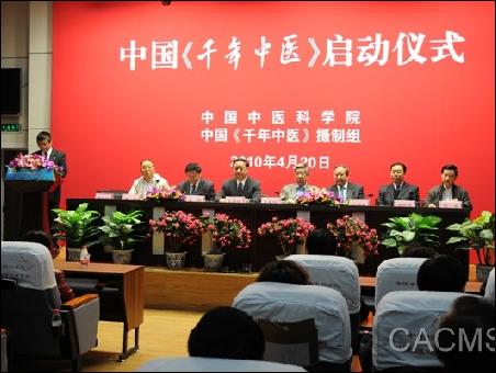 2010年4月20日上午,我國大型電視系列片中國《千年中醫(yī)》啟動(dòng)儀式在中國中醫(yī)科學(xué)院舉行。該項(xiàng)目由中國千年文化工程攝制委員會(huì)組織拍攝,是中國千年文化系列電視劇目中的一個(gè)重要組成部分。該項(xiàng)目在國務(wù)院《關(guān)于扶持和促進(jìn)中醫(yī)藥事業(yè)發(fā)展的若干意見》發(fā)布一周年之際啟動(dòng),正是文化宣傳系統(tǒng)與中醫(yī)界聯(lián)手宣傳中醫(yī)藥文化、推動(dòng)中醫(yī)藥發(fā)展、落實(shí)國務(wù)院意見精神的重要舉措。
