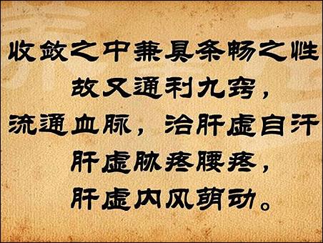 功效:這個藥是怎么來的,這個藥的植物叫山茱萸,它的果實(shí),等到采收的季節(jié)采收下來,然后取這個果肉,這個核要去掉,現(xiàn)在我們都叫凈芋肉,取它的肉,然后曬干,吃到嘴里是酸酸的,甜甜的,熬好以后非常的酸,在中醫(yī)里講這個酸入肝,山萸肉主要是滋補(bǔ)肝腎之陰的,最主要呢是滋肝陰。因?yàn)樗伾羌t的,紅的赤色入心,所以它是補(bǔ)心肝腎三臟之陰。