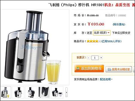 699元的飛利浦1861榨汁機(jī)京東商城的截圖