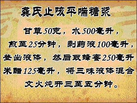 龔?fù)①t,他把這個甘草進一步研究,他就研究出一個小秘方,有潤肺,止咳的作用。對于慢性支氣管炎,小兒慢性慢支,哮喘,咳,或者是說有點感冒,我們身體免疫系統(tǒng)差以后,他就經(jīng)常咳喘的人,對于這些效果非常好。
