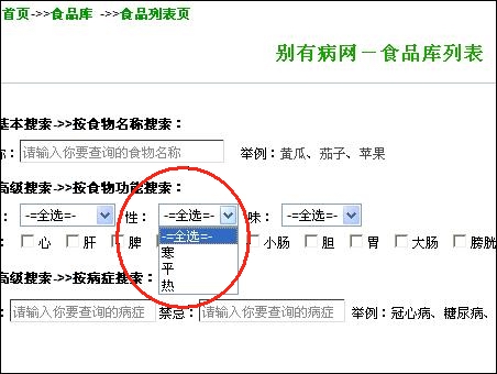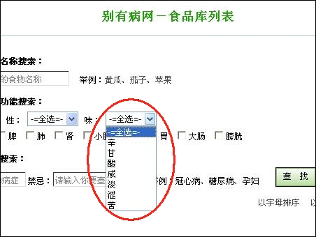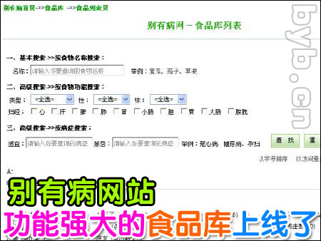 點擊此鏈接,進入別有病網(wǎng)站食品庫:http://fangyingfang.com/foodslist.aspx