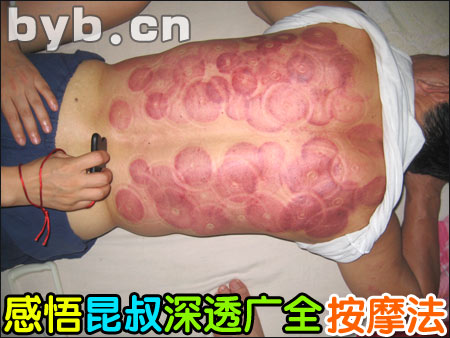 【byb.cn 大道至簡】 系統(tǒng)接受昆叔按摩、刮痧、拔罐已有四年歷史,從未間斷過。除了自身體驗(yàn)以來,也看著昆叔給客人服務(wù),學(xué)到了不少的知識。我覺得有必要將昆叔的技法,和我的心得感悟?qū)懴聛恚c網(wǎng)友們一起分享。