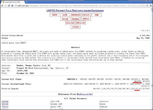 美國專利法規(guī)條款規(guī)定800/302為轉基因農作物類別
