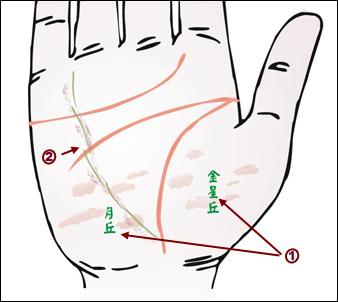 有肝病者,手掌面血色較淡,有暗紅或紫斑。三才紋(天、地、人紋)多呈黃色或褐色。身體狀態(tài)隨徵狀出現(xiàn)而漸感不佳。金星丘、月丘見斑點(diǎn),多是肝病并發(fā)黃疸現(xiàn)象。
