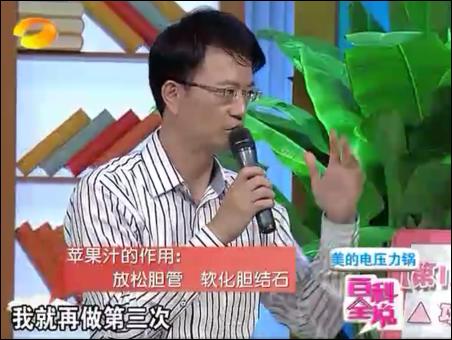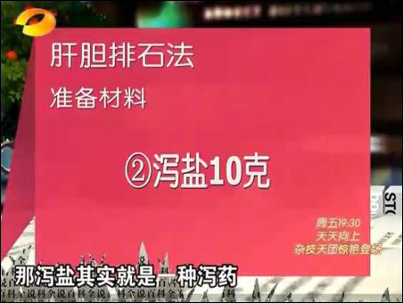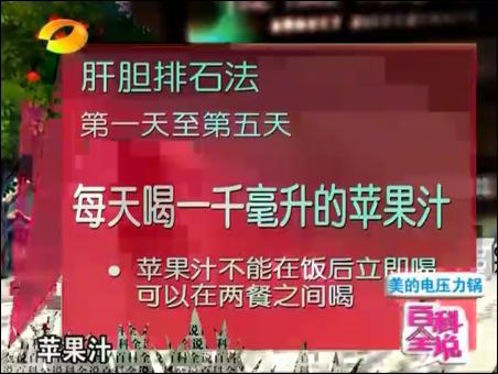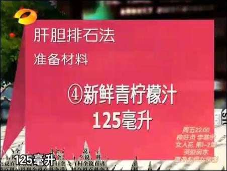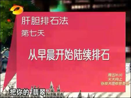 【byb.cn】?2010年11月3日、11月4日,湖南衛(wèi)視百科全說邀請臺灣生機(jī)營養(yǎng)專家、知名膳食營養(yǎng)保健顧問王明勇先生,向全國電視觀眾介紹采用純自然的方法,在七天之內(nèi),排毒肝膽內(nèi)的結(jié)石,沒有任何的副作用。