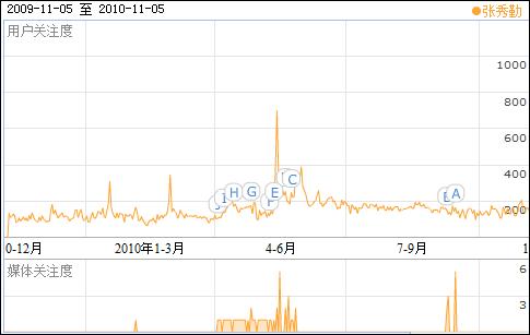 張秀勤百度指數(shù),2010年5月14日,指數(shù)一度高達(dá)701點(diǎn),11月5日,為152點(diǎn)