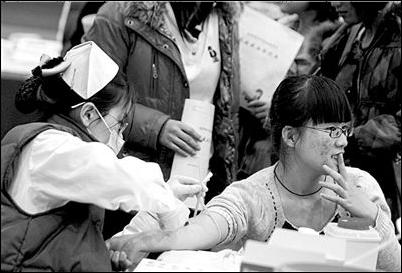 10月26日,針對(duì)“獻(xiàn)血旺季首次出現(xiàn)用血緊張”的情況,市血液中心發(fā)出緊急呼吁。與此同時(shí),衛(wèi)生部部長(zhǎng)陳竺也帶頭走上采血車,第三次在公眾面前無(wú)償獻(xiàn)血。