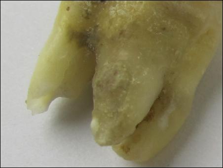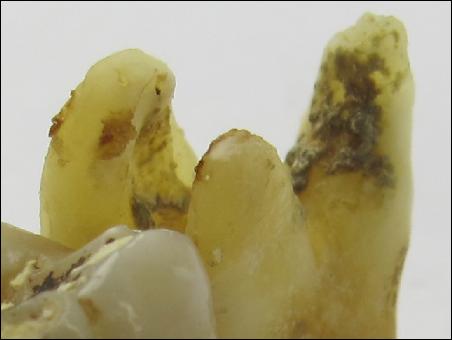 拔下的牙根處,分布著許多黑色的污垢,侵蝕著牙槽骨,不停地發(fā)炎