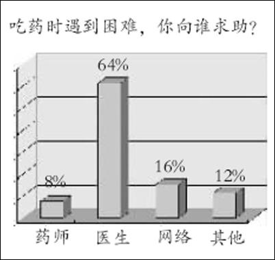 調(diào)查中,有著和李大媽一樣困惑的人不在少數(shù)。在吃藥遇到問題時,64%的人會“向醫(yī)生求助”,16%的人選擇“網(wǎng)絡(luò)查詢”,而“向藥師咨詢”則排在最后,只有8%。但同時,參與調(diào)查者又認為藥師十分必要。他們所希望的藥師需要符合三個條件:有專業(yè)的藥劑知識、經(jīng)過考核認證(44.44%),向患者提供用藥建議,沒有賣藥的目的性(41.67%),有耐心(13.89%)。
