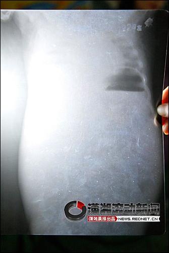 ?。ㄐ≡疲ɑ┰谏轿鬟\城當?shù)蒯t(yī)院拍攝的正面X光片。 北京天使媽媽貧困兒童救助項目負責人收到胡家提供的部分資料,經(jīng)咨詢相關(guān)專家后得悉,可能是布加氏綜合征。 圖/瀟湘晨報滾動新聞記者 張慧聰)
