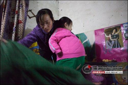 母親幫小云鋪好被窩。天天她都陪在小云身邊,悉心照顧。