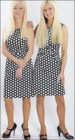 整形母女:你一定會以為照片中的兩個女人是孿生姐妹。非也!她們其實(shí)是母女倆!珍妮特(母親)花了1.3萬美金,就是為了消除她和女兒珍妮之間22歲的年齡差距。如今,這對母女都是一頭金發(fā),都具備完美的身材和腿部曲線,甚至體重都相同,除了身高有些差異,眼睛的顏色略微不同,她們幾乎一模一樣。