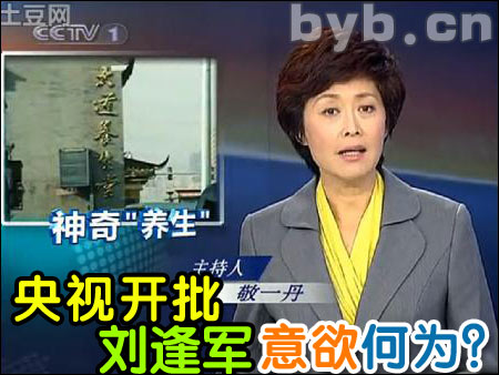 【byb.cn XJ】 2010年12月29日、30晚,央視一套《焦點(diǎn)訪談》和新聞?lì)l道新聞1+1,開始炮轟北京大道堂劉逢軍,各大媒體也紛紛轉(zhuǎn)載了此消息,大有張悟本事件重來一遍的勢(shì)頭。詳細(xì)新聞,請(qǐng)看相關(guān)文章:http://fangyingfang.com/doc_2394.aspx