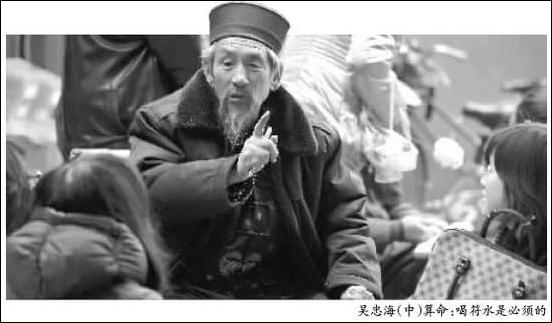 吳將記者帶到了他的算命攤前,此時(shí)已有一年輕女子坐在這里,據(jù)稱是因父母身體不好,她的生活也有些不順,才來(lái)求助。吳稱,除了喝符水外,還需要做一場(chǎng)法事,地點(diǎn)在女子家中,過(guò)程保密。在約定了做法事的時(shí)間后,女子離去。