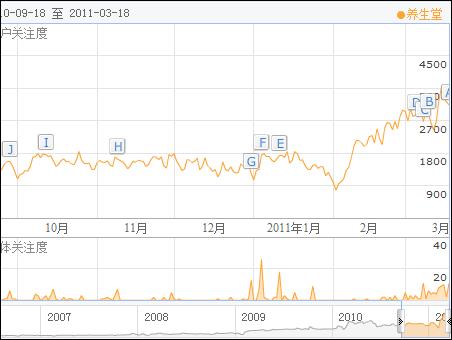 總之,在醫(yī)學(xué)、養(yǎng)生這類(lèi)節(jié)目上,要兼顧收視率和知識(shí)點(diǎn)的講解清晰度上,在這點(diǎn)上,BTV養(yǎng)生堂做的就相對(duì)比較好。它的受眾主要是中老年人,為了讓這類(lèi)觀眾聽(tīng)明白,語(yǔ)言就一定要通俗和淺顯。特別是在春節(jié)以后,悅悅替代王寧主持,并且節(jié)目進(jìn)行了改版,收視率應(yīng)該有了明顯的上升,3月15日,養(yǎng)生堂的百度指數(shù)最高值已經(jīng)達(dá)到3610點(diǎn),并且上升勢(shì)頭非常平穩(wěn),超過(guò)百科全說(shuō),成為電視養(yǎng)生類(lèi)節(jié)目的NO.1,只是時(shí)間問(wèn)題了。