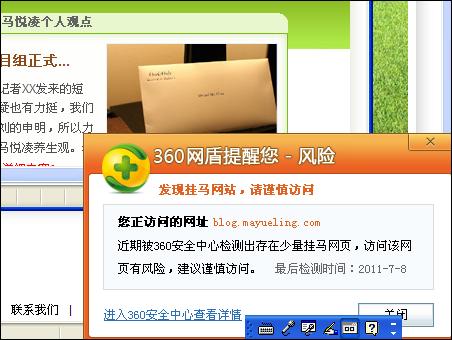 馬悅凌官網(wǎng)被360安全衛(wèi)士診斷為掛馬