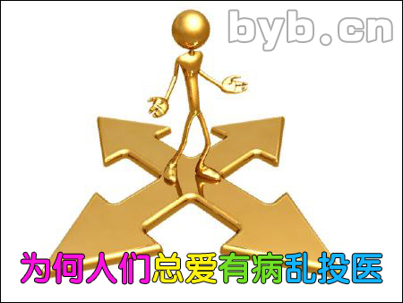 【byb.cn 大道至簡(jiǎn)】 有病亂投醫(yī),形容人得病之后,在未搞清病因的情況下,以速效為目標(biāo),不停地在各類(lèi)醫(yī)生之間做選擇性治療,其結(jié)果是貽誤病情,人財(cái)兩空。那人們?yōu)槭裁磹?ài)有病亂投醫(yī)呢?
