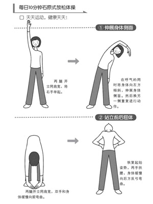 ★在不感到疼痛的限度內(nèi),做10分鐘身體放松體操。