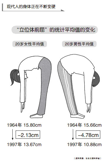 在石原結(jié)實看來,“軟”和“硬”決定了一個人的“身體年齡”。有些人已經(jīng)70多歲,但整個身體仿佛富有彈性,動作能夠保持輕柔的連續(xù)性,走起路來擺臂幅度和步幅都很大,看著就英姿颯爽。而很多年輕人才20幾歲,走起路來動作缺乏連續(xù)性,四肢顯得非常僵硬,經(jīng)常佝僂著腰,連立正的姿勢都沒法保持很久。