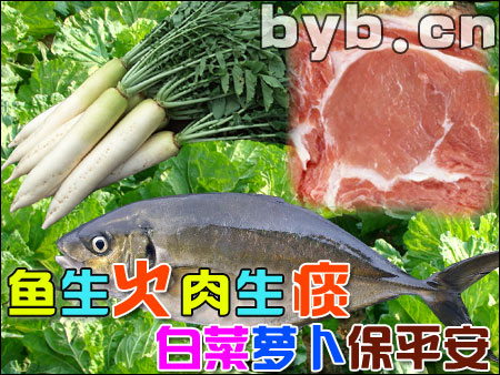 【byb.cn】 民諺有一句話(huà)是:“肉生痰魚(yú)生火,蘿卜白菜保平安”。這話(huà)到底有沒(méi)有科學(xué)道理呢?下面我和大家一起學(xué)習(xí)一下。