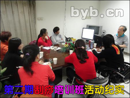 【byb.cn 大剛】 都說(shuō)萬(wàn)事開頭難,又說(shuō)好的開始是成功的一半。繼10月15日成功舉辦首期刮痧培訓(xùn)班以后,別有病網(wǎng)站第二期刮痧培訓(xùn)班于11月26日在北京中關(guān)村鼎好大廈1510室舉行。來(lái)自湖北、廣西、陜西、河北、北京等地的共計(jì)7名學(xué)員參加。和上次不同,本次參加培訓(xùn)的是清一色的巾幗,年齡最大的56歲,最小的30歲。用徐老師的話說(shuō),女人聚在一起,話題永遠(yuǎn)離不開美麗,因而為了美麗,也就自然更加關(guān)注健康;而男人在一起的話題則是事業(yè)和掙錢,我想,這也可能是男人壽命比女人短的原因之一吧!