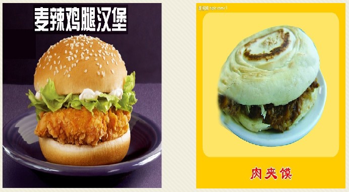 ??? “肉夾饃”距今以有百年歷史,現(xiàn)以演變?yōu)橐环N文化,一種地方文化,一種飲食文化。繁華之都,鄉(xiāng)野小鎮(zhèn),大雅之堂,路邊街頭隨處可見。其制做工藝可稱的上“非物質(zhì)文化遺產(chǎn)”。一個(gè)漂泊在外的人,吃到當(dāng)?shù)氐奶厣嬍?,就?huì)產(chǎn)生一種思故情。漢堡包,建國初期隨洋快餐一起來到中國,就其時(shí)間已是我們?nèi)鈯A饃幾代以下子孫,更何談什么文化,就現(xiàn)在所傳什么“堡文”文化,也是商業(yè)炒作,只會(huì)曇花一現(xiàn)。