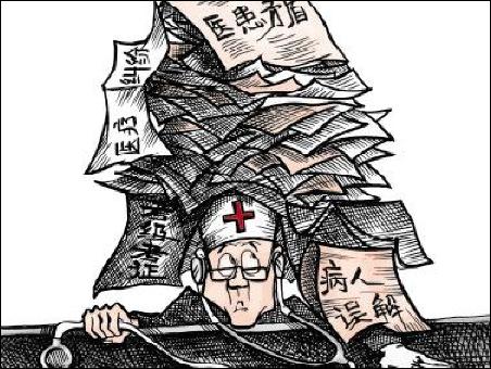 同仁血案和8毛門病案,從不同的側(cè)面反映了當今社會嚴重的醫(yī)患關(guān)系,和轉(zhuǎn)型社會所面臨的深刻的社會矛盾。試想,當政府投入嚴重不足,醫(yī)療商業(yè)化時,醫(yī)生還是白衣天使嗎?