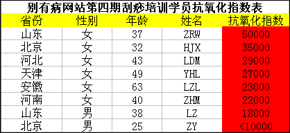 別有病網(wǎng)第四期刮痧班學員抗氧化指數(shù)