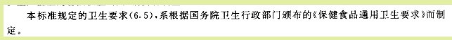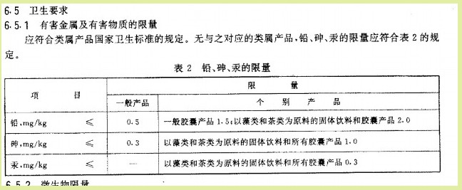 ?? 報道中稱“我國保健(功能)食品通用標準規(guī)定,除膠囊、固體飲料外,一般食品中的重金屬鉛含量不得超過0.5mg/kg”。保健(功能)食品通用標準GB 16740-1997指出(以下為原文)“本標準規(guī)定的衛(wèi)生要求( 6.5 ) 系根據(jù)國務院衛(wèi)生行政部門頒布的《保健食品通用衛(wèi)生要求》而制定”。如圖