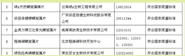?? 我們看到,國家食品藥品監(jiān)督管理局2月29日下發(fā)的《關于加強以螺旋藻為原料的保健食品監(jiān)督檢查的通知》(今天在國家食品藥品監(jiān)督管理局的網(wǎng)站還查不到,但在有的地方食品藥品監(jiān)督管理局的網(wǎng)站已經(jīng)看到文件),亦指出上述螺旋藻產(chǎn)品鉛含量超標,名單如圖,估計食品藥品監(jiān)督管理局也是根據(jù)上述業(yè)已過時的《保健(功能)食品通用標準》(其中鉛限量的部分)作出結(jié)論的。