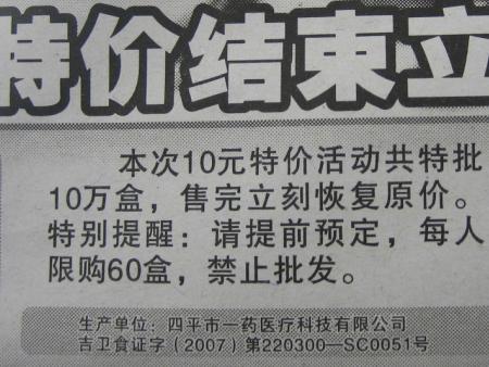 大家想一想,如果是美國進口的產品,要有批準文號;如果不是進口的,怎么會在四平一家藥廠生產美國貨呢?這種瞞天過海,張冠李戴,偷梁換柱之招,讓你防不勝防。這是正規(guī)藥廠出的藥,也有合格證,只要吃不死人,肯定就不會有大事。但是,如果你叫參茸乳鴿膠囊,會有人對此有興趣嗎?凡事,只要和美國掛上鉤,就一定是先進的東西。這不,美國商務部長古鐵雷斯訪華,居然帶的是這種產品,竟然還上了央視。