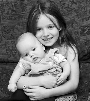 6歲的弗朗西絲卡抱著妹妹羅辛