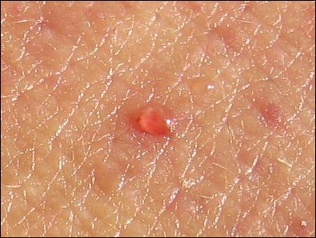我們把紅圈處放大,大家就能清楚看到冒出的黃水,這就是濕毒