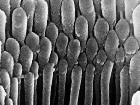 這張圖片看起來(lái)好像是在耳朵里面對(duì)耳毛細(xì)胞進(jìn)行近距離觀察時(shí)拍攝的。耳毛細(xì)胞的主要功能是發(fā)現(xiàn)對(duì)聲震作出反應(yīng)時(shí)產(chǎn)生的機(jī)械運(yùn)動(dòng)。